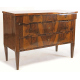Comò lastronato in legno di noce, tre cassetti, gambe piramidali. Italia, sec. XIX. cm92x127x57 (piccole mancanze alla lastronatura)
