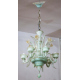 Lampadario a sei luci in vetro a fondo verde di Murano con inclusioni dorate