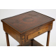 Mobiletto lastronato in legno di noce, intarsi a volute vegetali, colombe e trionfi musicali, piano apribile con specchio interno, un cassetto, ripiano inferiore. Italia, sec. XIX. cm75x47x37 (lievi mancanze alla lastronatura)