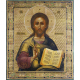 Icona su tavola dipinta e decorata in oro, raffigurante Cristo Pantocratore. Russia, inizi sec. XX. cm31x26,5 (lievi difetti)