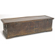 Cassapanca in legno di noce con riquadri romboidali a rilievo sul fronte e sui lati. Italia, sec. XVII. cm45x162x50 (restauri e mancanze)