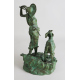 Fusione in bronzo patinato raffigurante pastorello con capra. Italia, fine sec. XIX. cm40x21x25