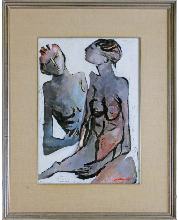 Due donne, anni '60, con cornice. Allegata autentica su foto dell'artista