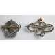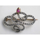 Lotto di due spille in oro giallo 18Kt ed argento con piccoli diamanti, un rubino da circa 0,2 carati ed uno smeraldo da circa 1 carato. Peso tot. gr. 21,5. Allegata dichiarazione di autenticità a cura della gioielleria Ci&Ci