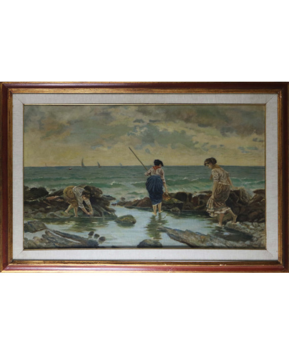 Marina con pescatrici, con cornice