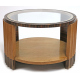 Tavolo da salotto con base tonda a profilo costolato, impiallacciata in legno di palissandro e betulla, piano in vetro. Italia, periodo Decò. Alt. cm 54; diam. cm 80 (mancanze)