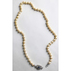 Collana in perle sintetiche con chiusura in oro bianco 18Kt, con zaffiri di circa 0,15 carati. Peso tot. della chiusura in oro gr. 6,5. Allegata dichiarazione di autenticità a cura della gioielleria Ci&Ci