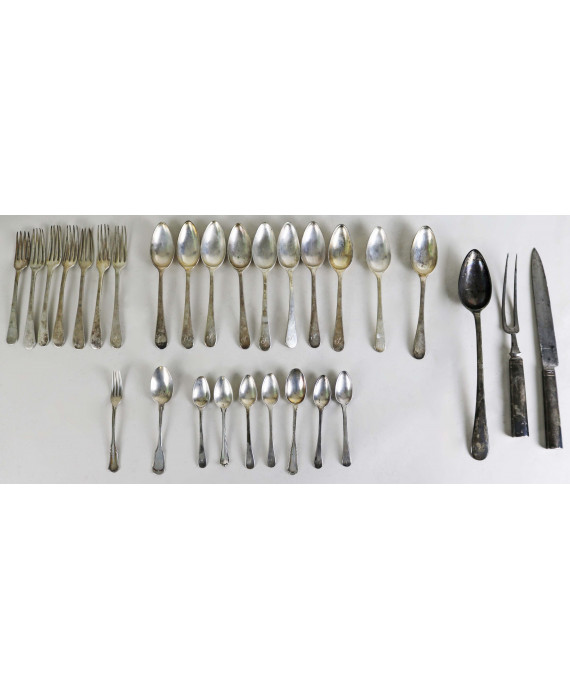 Lotto di numerose posate in argento, tra cui alcune con bolli Roma del sec. XIX. Peso tot., escluse due posate di servizio, gr. 1435