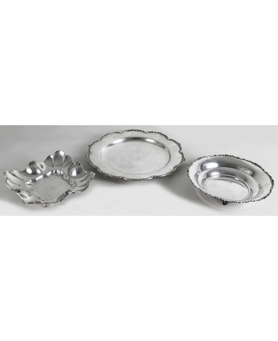 Lotto di tre centrotavola in argento 800. Peso tot. gr. 1300