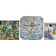 Lotto di tre placche in maiolica dipinta con scena di caccia, Atlante che sorregge il mondo e cavaliere con blasoni. Manifattura di Gubbio del sec. XX, due firmate GM. cm33x33;cm40x40;cm30x20