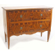 Comò lastronato in legno di noce, filettature ed intarsi in legni chiari, due cassetti, gambe piramidali. Italia, periodo Luigi XVI. cm97x125x49 (piccole mancanze)