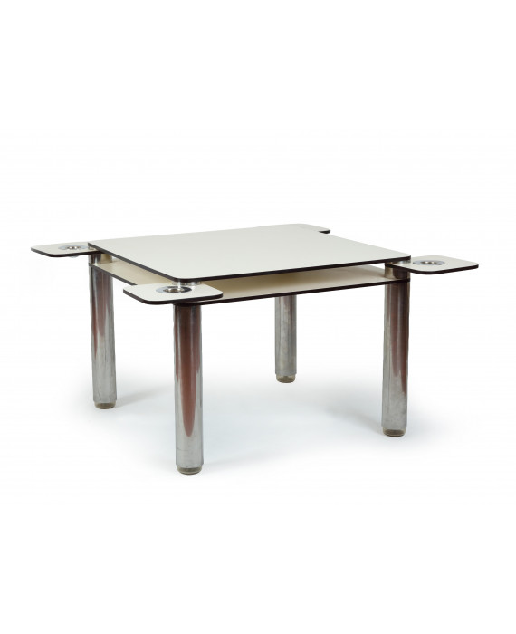 Tavolo da gioco modello Poker, design Joe Colombo, 1968, rivestito in laminato plastico stratificato a fondo bianco e quattro gambe cilindriche in acciaio. cm70x98x98 (usure del tempo)