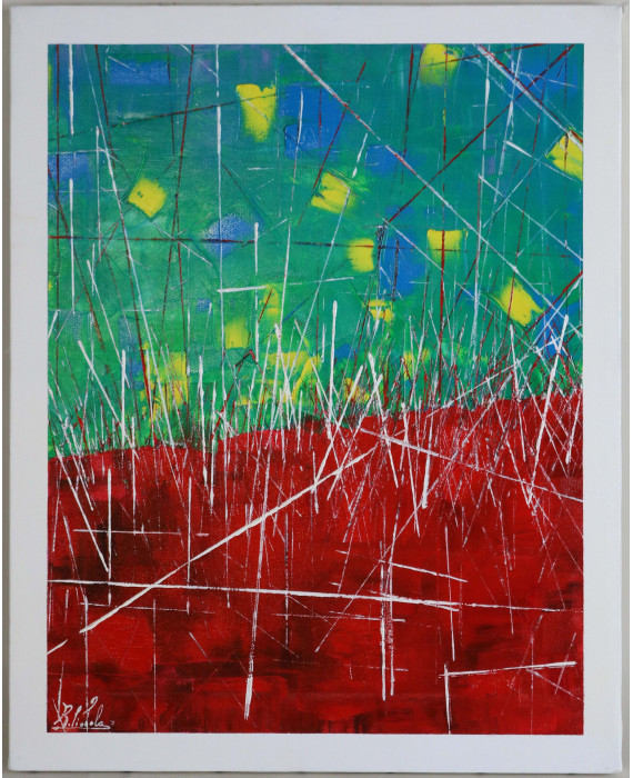I Campi del mio cuore, 2020. Allegato certificato di autenticità. L'artista Raffaele Ciotola nasce a Napoli il 17 ottobre 1964, sostenuto da una madre attenta e sensibile che promuove i suoi studi, assecondando la sua indole artistica. Consegue il diploma di maturità artistica e quello di Maestro d'Arte all'Istituto Statale d'Arte "Filippo Palizzi" di Napoli nel 1983. Fin da giovanissimo si dedica alla pittura in modo professionale e, dopo aver esordito nel 1980 in occasione di una mostra collettiva nella sua città natale, proseguirà partecipando ad altre collettive e personali in numerose città italiane fino al 2002 (Piano di Sorrento, Sant'Anna a Napoli, Miano, Viterbo, Milano, Portogallo). Viene premiato dal prof. Franco Girosi, insigne artista napoletano del secolo scorso, con la medaglia d'oro alla Biennale Nazionale di Arte sacra a Torre del Greco nel 1980. Fondamentali per la sua formazione gli incontri con il prof. Franco Girosi e con l'artista Luigi Signore, considerato al momento tra i migliori scultori presepiali in Italia. Intraprende gli studi musicali, frequentando il corso di canto presso il Conservatorio di Napoli, ma l'incontro avvenuto a Roma nel 1987 con il maestro Renato Guelfi, cantante lirico e pittore, sarà determinante per la sua crescita professionale, tanto da portarlo ad esibirsi come cantante in alcuni teatri nazionali (Lecce, S. Maria di Leuca, Ronciglione, Villa Pignatelli a Napoli). Tra i riconoscimenti a lui attribuiti, si menzionano: la medaglia d'oro al Premio "La Triade", Palazzo Sormani - Sala del Grechetto - Milano; il diploma d'onore a S. Anastasia, Napoli. Al 2002 risale la mostra personale nella Tuscia, in occasione della quale espone per la prima volta alla Sala Anselmi di Viterbo. Il suo stile pittorico e la sua produzione si contraddistinguono per l'uso intenso del colore e per gli effetti chiaroscurali, esprimendo una libertà creativa ed un'energia vitale smisurata, senza nascondere emozioni forti ed eloquenti, lasciando a chi osserva una speranza, una luce, quella che conduce oltre la solitudine sfumando ruoli e convenzioni sociali. Infatti, dalla fine degli anni '90, la sua attività si concentra maggiormente su temi di attualità e risente dell'impegno civile speso contro l'omofobia e i comportamenti discriminatori, rendendosi propugnatore di messaggi anticonformisti, tuttavia ispirati da valori etici universali. Fondatore di movimenti artistici come la Finger Art Ciotola, la Rock Art Ciotola e il progetto Stop Homoph Art, Ciotola ha segnato un nuovo corso nell’arte contemporanea con linguaggi espressivi unici e potenti. Tra le sue opere più significative, La Madonna di Fatima è entrata a far parte della collezione permanente del Museo di Fatima, mentre un altro suo dipinto è custodito nella Cattedrale di Bagnoregio, segno del suo forte legame con la tradizione e la spiritualità. Le sue opere l'Italia contro il razzismo e Covid-19 sono state apprezzate dal Presidente della Repubblica Italiana per il loro impegno tematico e sociale. La sua visione artistica è raccontata anche nel libro “Raffaele Ciotola e il suo vitalismo” (Ediz. a colori, Mondadori, Feltrinelli, IBS, Libreria Universitaria), che raccoglie la sua carriera e la filosofia dietro la sua arte. Con “Arte Top Contemporanea”, Raffaele Ciotola continua a proporre un dialogo tra tradizione e innovazione, tra bellezza e riflessione sociale, confermandosi una voce essenziale e originale nel panorama artistico italiano e internazionale.