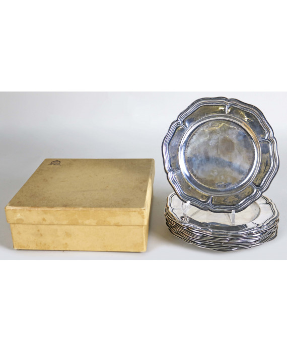 Set di dodici piattini in argento 925 firmati Buccellati. Peso tot. gr 2700
