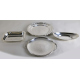 Lotto di quattro oggetti in argento: un vassoio biansato ed un centrotavola a bordo perlinato in argento sterling ed un piatto tondo ed un centrotavola con bolli 800. Peso tot. argento sterling gr. 950; peso tot. argento 800 gr. 1890