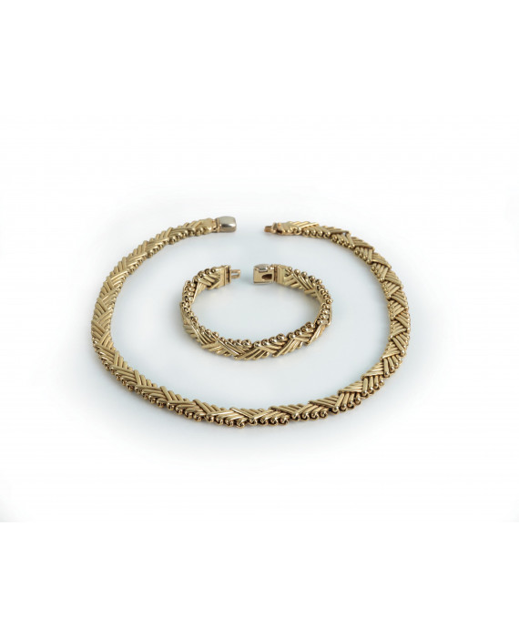 Parure composta da un girocollo ed un bracciale in oro giallo 18Kt. Peso tot. gr. 82. Allegata dichiarazione di autenticità a cura della gioielleria Ci&Ci