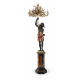 Moro in legno ebanizzato, dorato e dipinto che sorregge un candelabro a sei braccia in bronzo dorato e lavorato a rami con fiori in porcellana policroma, poggiante su piedistallo esagonale dipinto a finto marmo. Italia, fine sec. XIX. Alt. cm230 (lievi difetti)