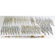 Servizio di posate in argento 800, composto da 16 forchette, 32 coltelli e 24 cucchiai, 24 forchette e 24 coltelli da pesce, 10 forchettine e quattro posate di servizio. Peso tot., esclusi coltelli con lama d'acciaio e quattro posate di servizio, gr. 4750