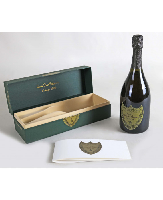 Bottiglia da collezione di Cuvee Dom Perignon Vintage 1992 in scatola originale.