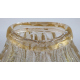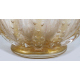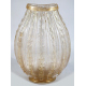Vaso in vetro trasparente di Murano con inclusioni di bolle d'aria e oro, corpo baccellato. Sul fondo firma parzialmente leggibile. Alt. cm32
