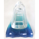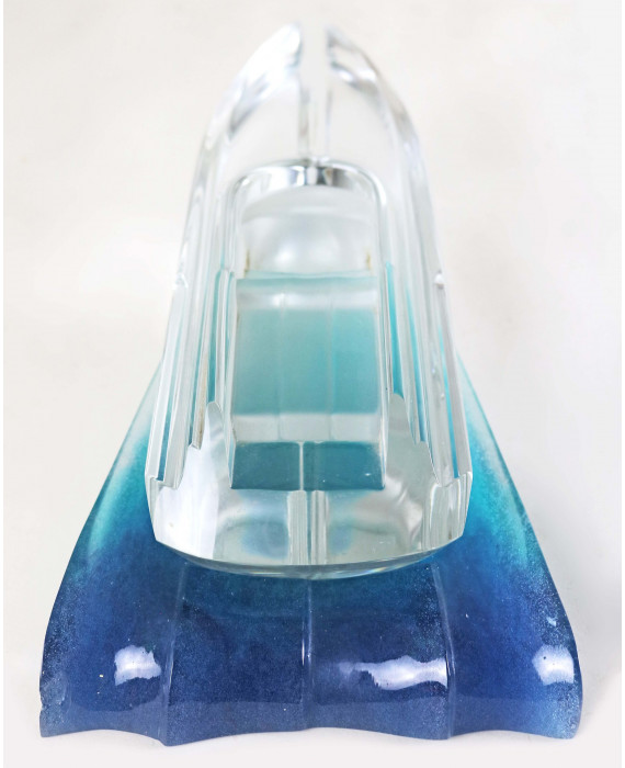 Motoscafo in cristallo trasparente firmato Daum France poggiante su base. lungh. cm39 (scheggiature)