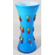Vaso modello Torre in vetro di Murano incamiciato a fondo azzurro, con decori policromi. Design Luigi Straffi per la serie i Lirici. Alt. cm41