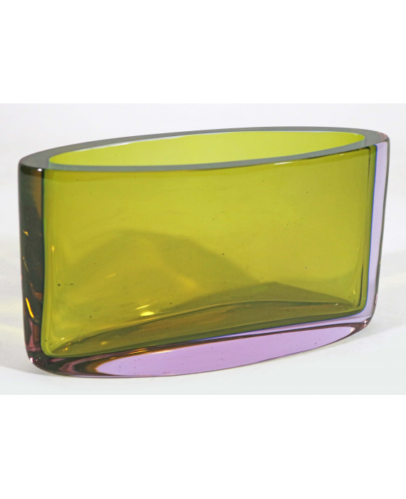 Flavio Poli (1900-1984). Vaso modello n. 11790 in vetro sommerso nei toni del verde e violetto. cm12x22x8