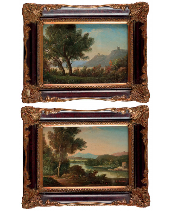 Signature firma in basso a destraTechnique: Coppia di dipinti ad olio su telaSize: cm11.5 x 16.5