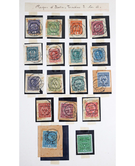 Serie di francobolli d'Austria del 1916/18 sovrastampati Regno d'Italia Trentino. Serie completa di 17 valori. Emissione dell' 11/11/1918. Rari e da esaminare attentamente
