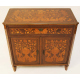 Credenzina in legno di mogano interamente intarsiata con vasi fioriti e volute, un cassetto, due sportelli. Olanda, inizi sec. XIX. cm77x81x41 (lievi difetti)