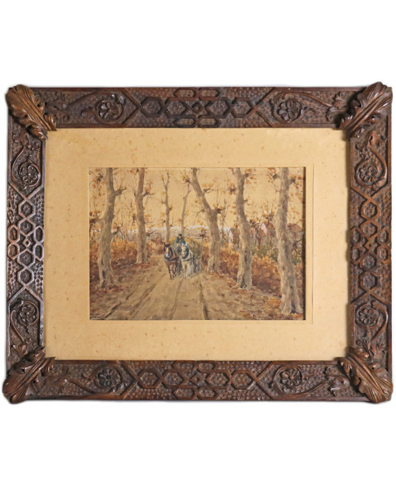 Sentiero alberato con carrozza, con cornice