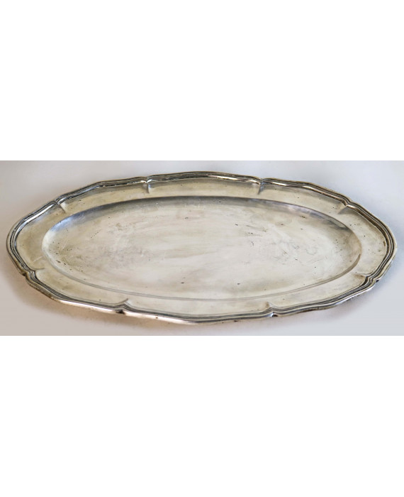 Vassoio in argento a corpo liscio con bordo mistilineo. Bolli Roma, sec. XIX. Peso gr. 1190