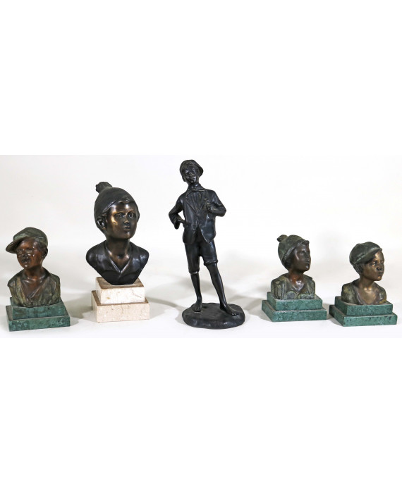 Lotto di cinque fusioni in bronzo raffiguranti scugnizzi napoletani di cui uno firmato De Martino, uno anonimo e tre firmati Parente. Alt. cm18/30/14712(2)