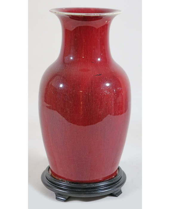 Vaso a balaustro in porcellana sangue di bue. Cina, prima metà del sec. XX. Alt. cm37 (scheggiatura al collo)