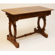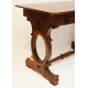 Lotto di uno scrittoio impiallacciato in legno di noce con filettature in legni chiari, un cassetto, sostegni ovali raccordati da traversa a tortiglione ed una poltroncina di accompagno in legno di mogano intarsiato. cm75x115x59 (difetti)