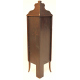 Vetrinetta ad angolo impiallacciata in legno di mogano ed intarsiata a serti vegetali, uno sportello. cm175x43x43