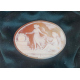 Teca contenente quattro cammei in conchiglia lavorata con scene classiche. Teca cm20x55; cammeo 5x3,5