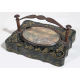 Lotto di un portasigarette in argento, e tre scatole, due fermacarte ed un mobiletto portagioie in lacca decorata in oro con personaggi e pagode. Manifattura orientale. Peso gr. 65