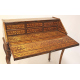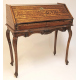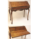 Mobile a ribalta lastronato in legno di pioppo e intarsiato in legno di noce con volute vegetali e uccelli stilizzati, calatoia con all'interno sei cassetti, un cassetto inferiore, gambe mosse. cm112x110x54