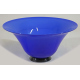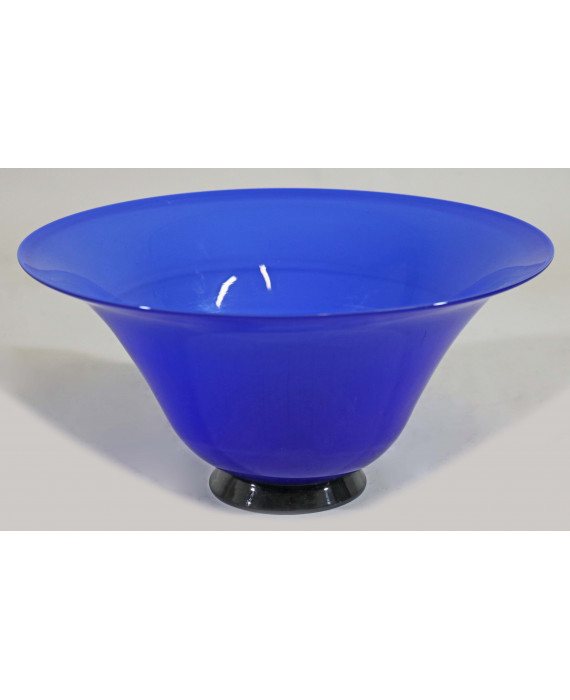 Centrotavola in vetro incamiciato di Murano nei toni del blu, base nera, firmato ssul fondo Venini 92. Alt. cm13; diam. cm27