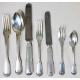 Servizio di posate incompleto in argento 800 composto da otto forchette, quattro cucchiai, quattro coltelli, quattro forchette e quattro coltelli medi, quattro forchette da pesce e quattro cucchiaini. Peso tot. gr. 1445 (esclusi coltelli)
