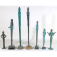Omero Bordo ( Tarquinia 1943-2018). Lotto di sette riproduzioni di statuine etrusche in bronzo patinato. Alt. cm54(2)/38/36/27(2)/25