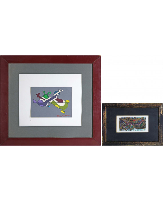 Technique: Lotto di due disegni a tempera, pennarelli e china su carta