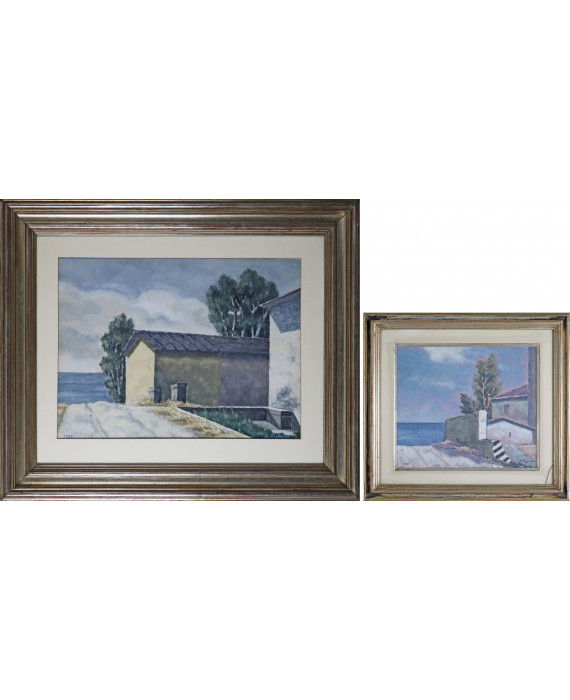 Technique: Lotto di due dipinti ad olio su faesite e su cartone