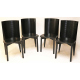 Gruppo di quattro sedie in legno ebanizzato e curvato con seduta in pelle. Produzione Calligaris, anni '80.