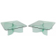 Coppia di tavoli da salotto con basi in cristallo curvato e piani quadrati. Design anni '80. cm40x120x120 (scheggiatura alla base di uno)