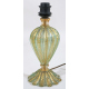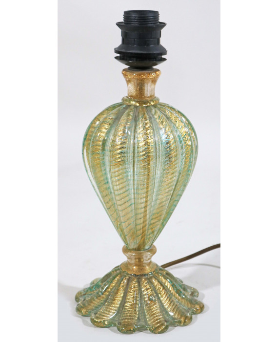 Lampada in vetro di Murano nei torni del verde con corpo costolato ed inclusioni dorate. Manifattura Barovier, sec. XX. Alt. cm29