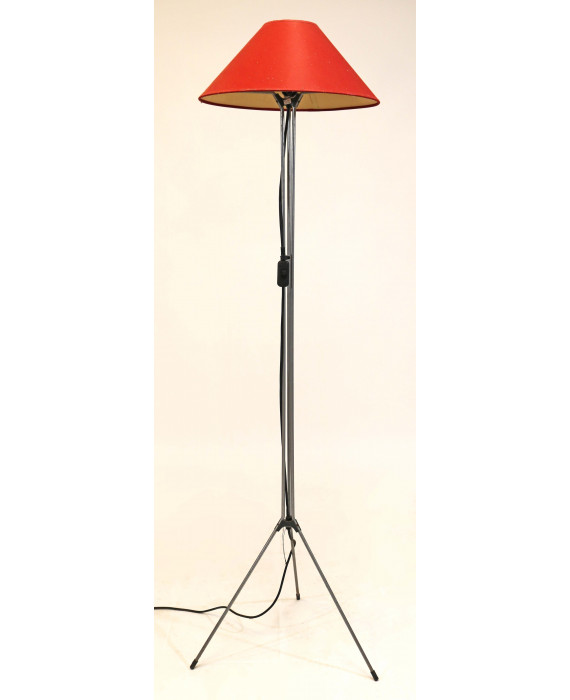 Lampada da terra con struttura in metallo e paralume in stoffa. Anni '60. Alt. cm150