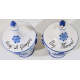 Coppia di vasi da farmacia in ceramica a fondo bianco decorata in blu con fiori e stemma araldico coronato ed iscrizioni Ung. Mercurial e Conf di Ginepro. Italia centrale, sec. XIX. Alt. cm28 (restauri ad un coperchio e craquele diffuso)