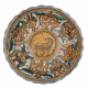 Alzatina in maiolica dipinta con leone passante centrale e decori floreali. Siena, inizi sec. XVII. Diam. cm24 (scheggiature al bordo)